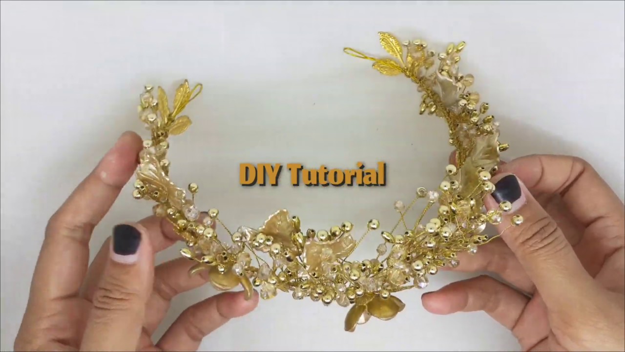 Diy Tutorial Make A Gold Flowers Crown Cara Membuat Mahkota Dengan Bunga Gold Youtube Mahkota Bunga Emas